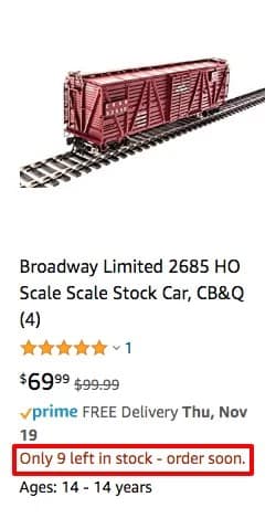 Highlighting limited quantity is one way to add urgency without referencing a specific timeframe. Here’s an example from Amazon.